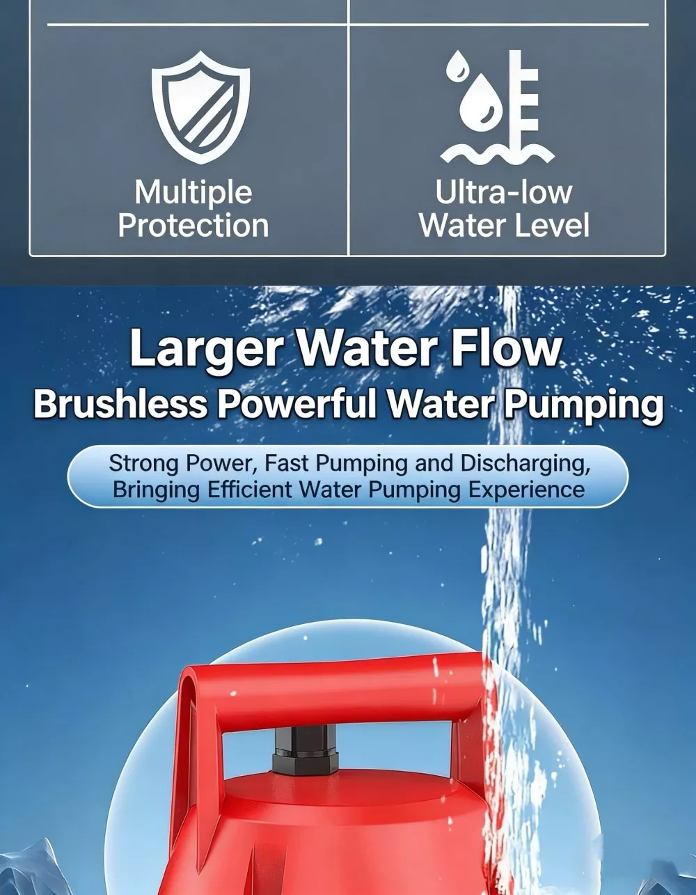 সাবমার্সিবল পাম্প হল একটি কমপ্যাক্ট, উচ্চ-দক্ষ নিষ্কাশন দ্রবণ যা পারিবারিক এবং হালকা বাণিজ্যিক ব্যবহারের জন্য ডিজাইন করা হয়েছে। অতি-লো সাকশন, 360° জল গ্রহণ, স্বয়ংক্রিয় সুরক্ষা এবং শান্ত অপারেশন সহ, এটি একাধিক পরিস্থিতিতে স্থিতিশীল, নিরাপদ এবং সুবিধাজনক জল অপসারণ প্রদান করে। এই নির্ভরযোগ্য সাবমারসিবল পাম্প জমে থাকা জল, ট্যাঙ্ক পরিষ্কার এবং স্থির জল নিষ্কাশনের সমস্যাগুলি কার্যকরভাবে সমাধান করে, এটি দৈনন্দিন ব্যবহারের জন্য একটি ব্যবহারিক পছন্দ করে তোলে।